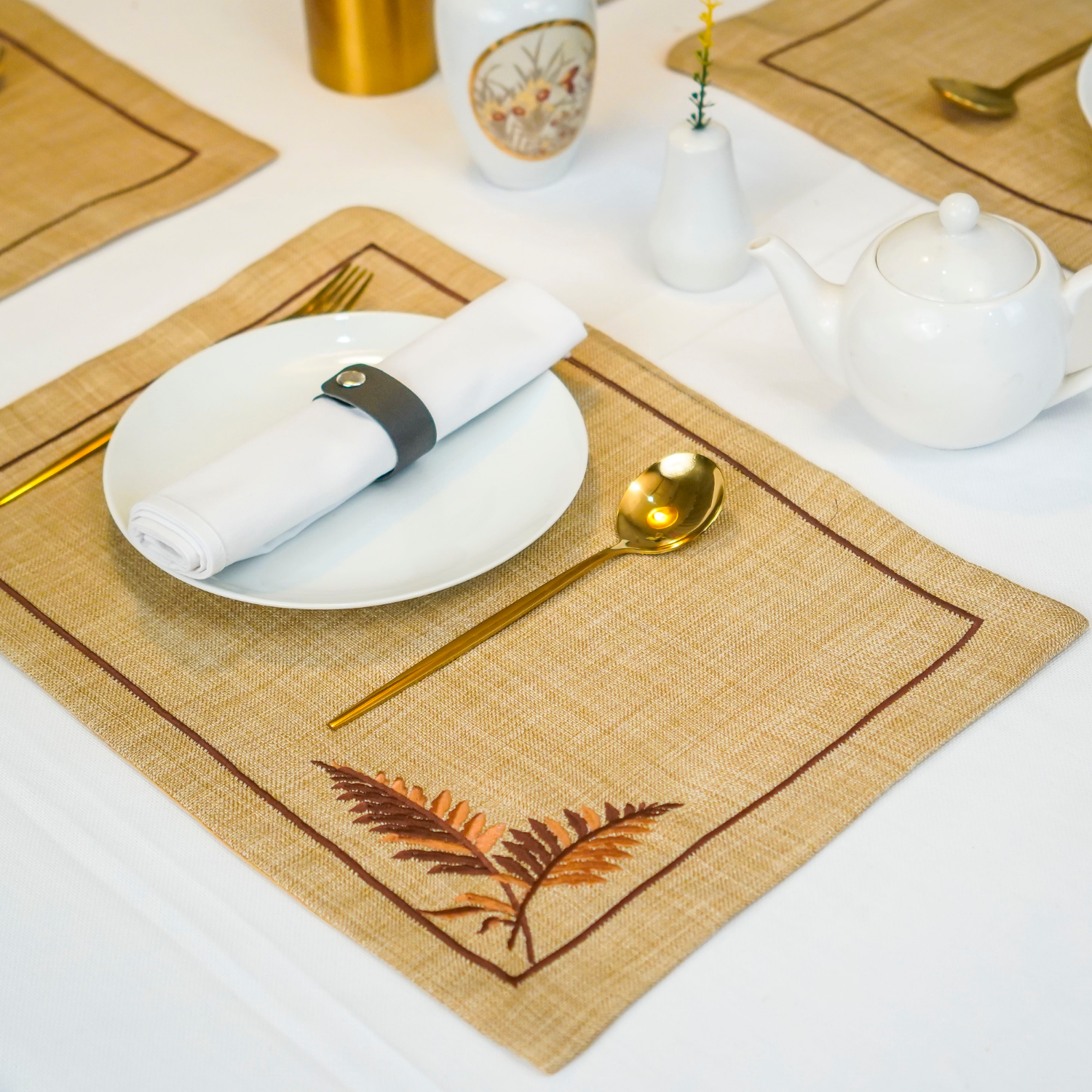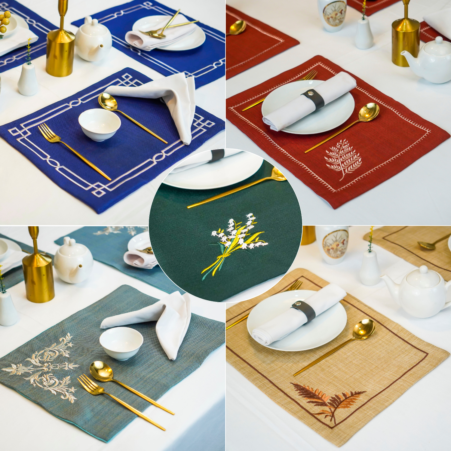 Perfect for casual or formal dining, these mats blend rustic charm with elegance.